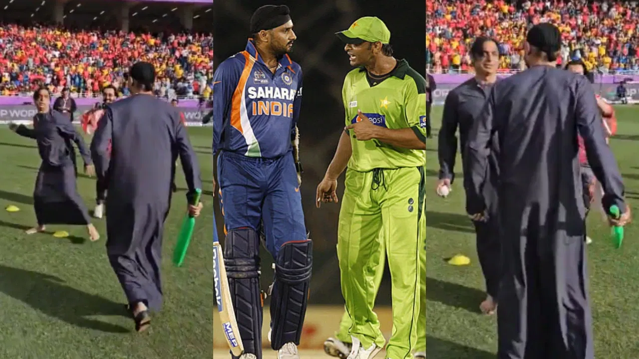 In the video, Harbhajan is seen holding a green-colored plastic bat while Shoaib runs in to bowl, mimicking their past on-field battle. The light-hearted face-off at the Dubai International Cricket Stadium was met with laughter from onlookers as the two former players embraced and shared a light moment.